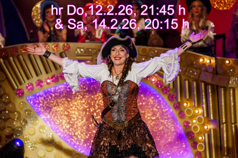 Ob im Blümchenkleid, als Flamingo oder Piratin: Andrea Volk dreht den Saal auf Links. Seit Jahren Bestandteil der „hessichen Weiberfastnacht“ im Fernsehen, ist die gefragte Rednerin ein Pfund im klassischen Sitzungskarneval. Viel gebucht bei Mädchen- oder Damensitzung aber auch Prinzenproklamationen, greift Andrea Stimmungen im Saal auf und variiert ihre Rede. Auch wenn es – wie so oft – laut ist! Siehe Video unter diesem Foto des ©hr/Sascha Rheker.